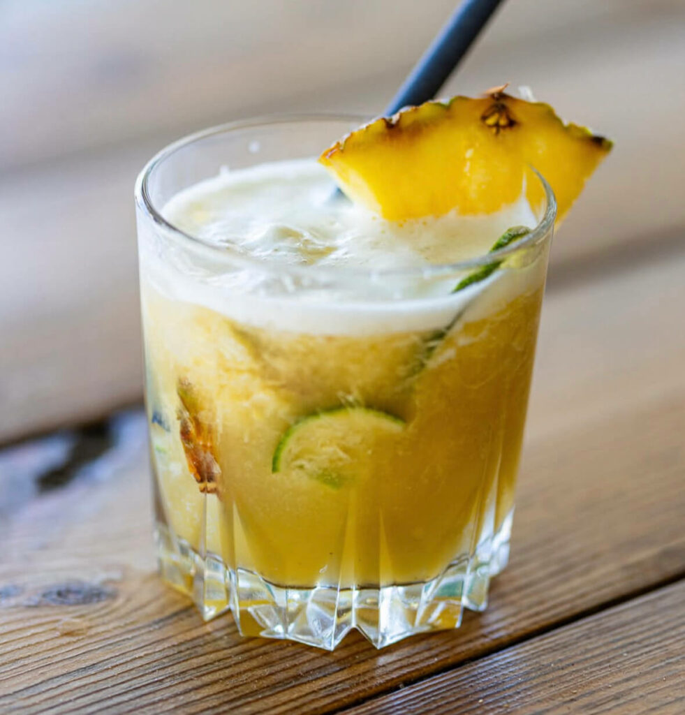 Jus d'Ananas, Crème Coco, Sirop de Rhum